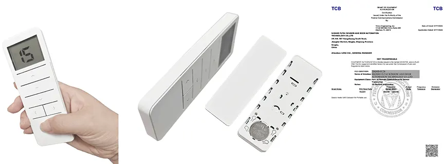এফসিসি এফসিসি দ্বারা অনুমোদিত, এফসিসি শংসাপত্র প্রাপ্ত রেডিও ফ্রিকোয়েন্সি (আরএফ) প্রযুক্তির ব্যবহার করে এফসিসি এফটি মোটর থেকে রিমোট কন্ট্রোলকে অনুমোদিত করে। এটি দূর থেকে অন্ধদের নিয়ন্ত্রণ করার জন্য একটি স্থিতিশীল, সুরক্ষিত এবং অত্যন্ত দক্ষ উপায় সরবরাহ করে। এই সমাধানটি আবাসিক বাড়িগুলি, অফিস ভবন এবং বৃহত বাণিজ্যিক জায়গার জন্য বিশেষভাবে ডিজাইন করা হয়েছে।